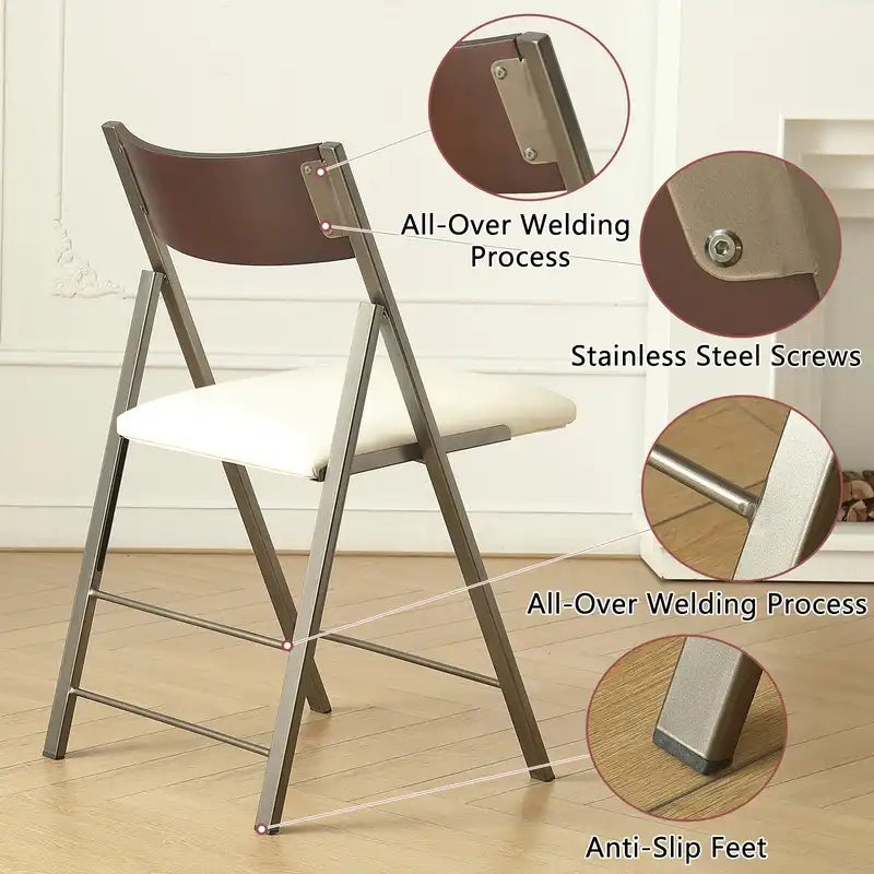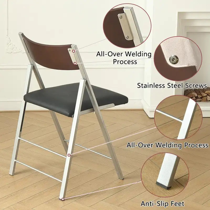 Folding Chairs with Cushion 2 Pack - Heavy Duty Steel Frame Foldable Dining Chairs, Waterproof Leather Indoor Outdoor Padded Chairs for Home, Conference Rooms,Weddings, Events (Wood)