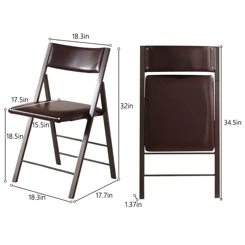 Folding Chairs with Cushion 2 Pack - Heavy Duty Steel Frame Foldable Dining Chairs, Waterproof Leather Indoor Outdoor Padded Chairs for Home, Conference Rooms,Weddings, Events (Brown)