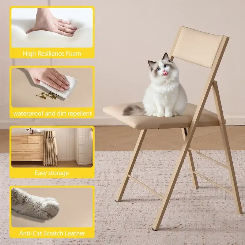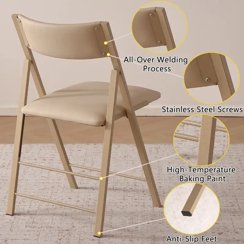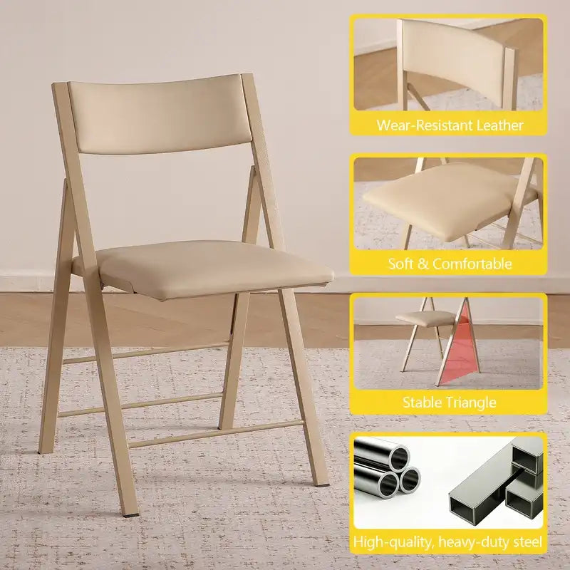 Folding Chairs with Cushion 2 Pack - Heavy Duty Steel Frame Foldable Dining Chairs, Waterproof Leather Indoor Outdoor Padded Chairs for Home, Conference Rooms,Weddings, Events (White)