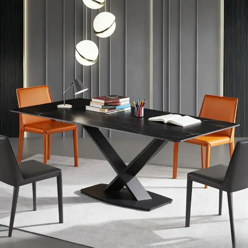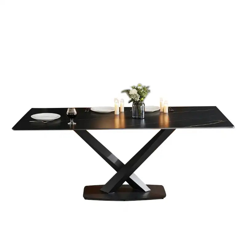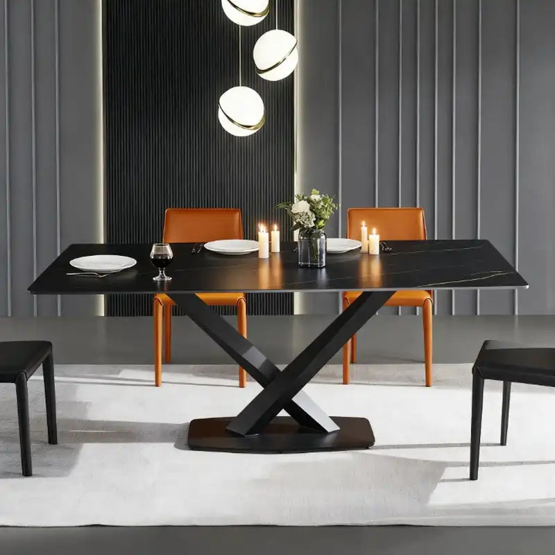 Black Modern Dining Table - X-Base | Sleek Dining for 6