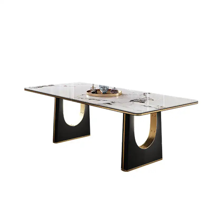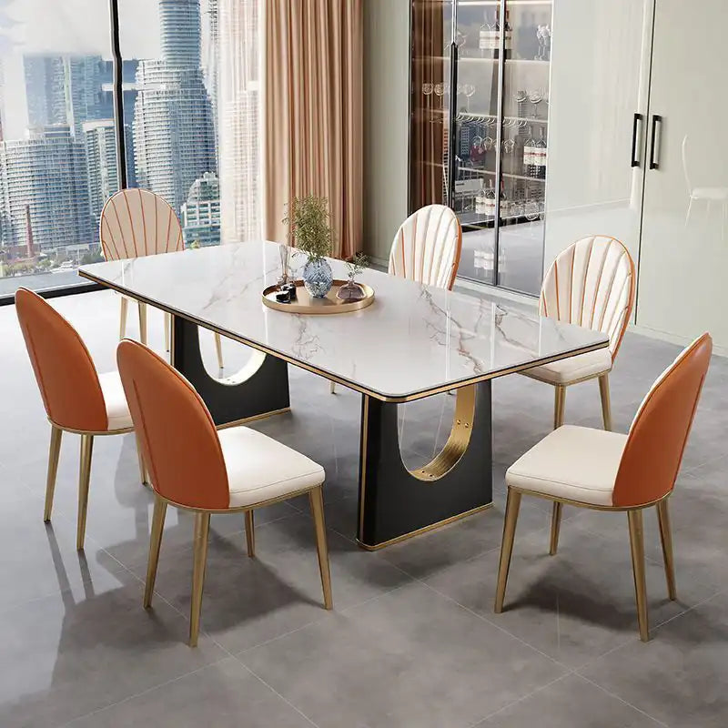 Marble Top Dining Table | Modern Curved Metal Base | Seats 6