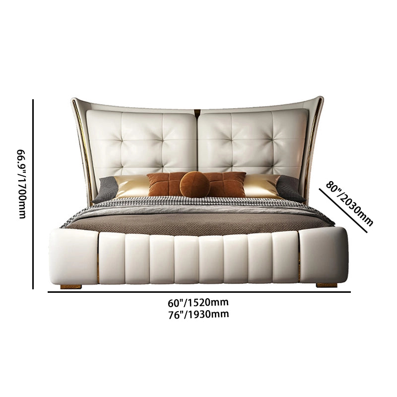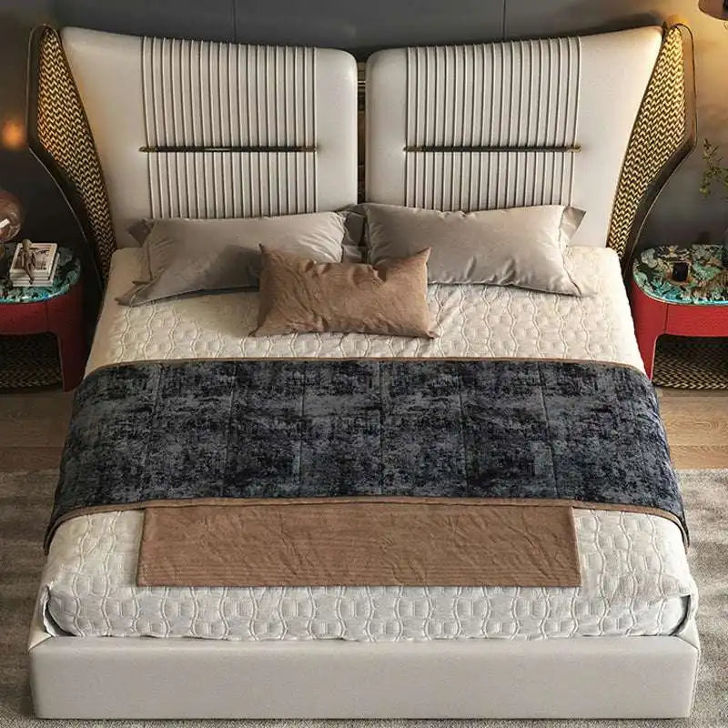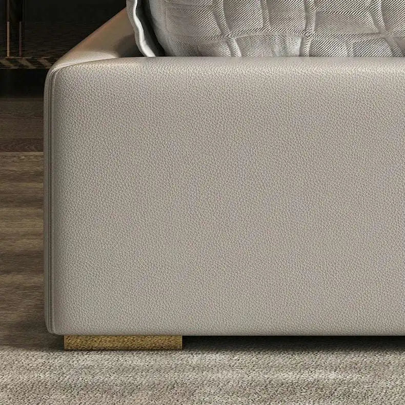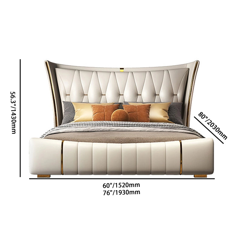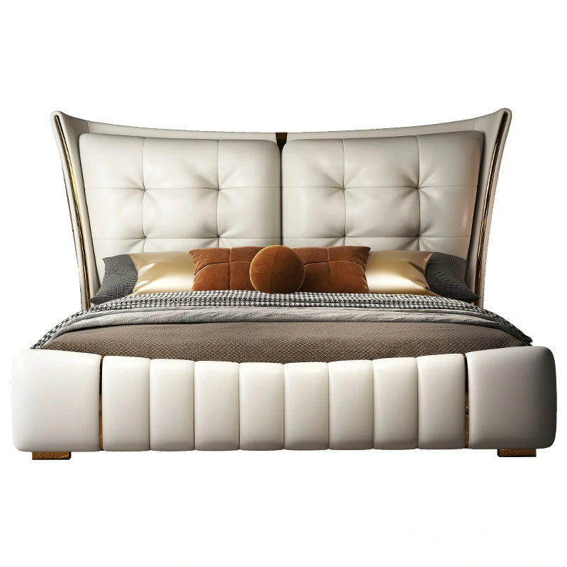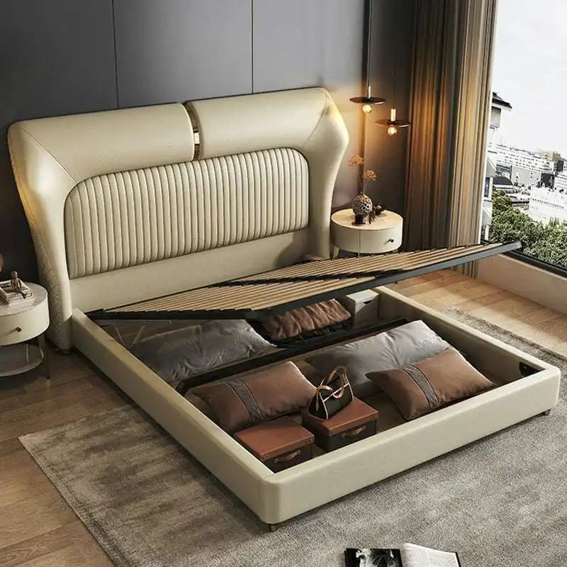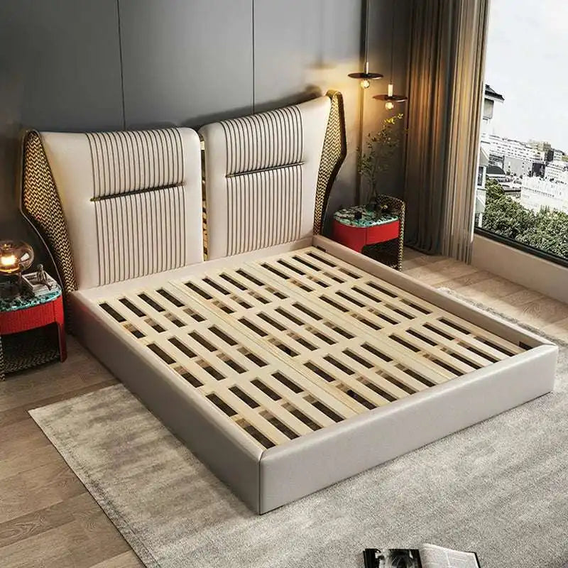 Cama King con respaldo alto: Estructura de cama moderna de cuero, diseño elegante