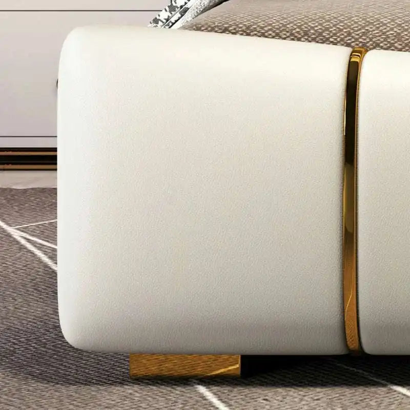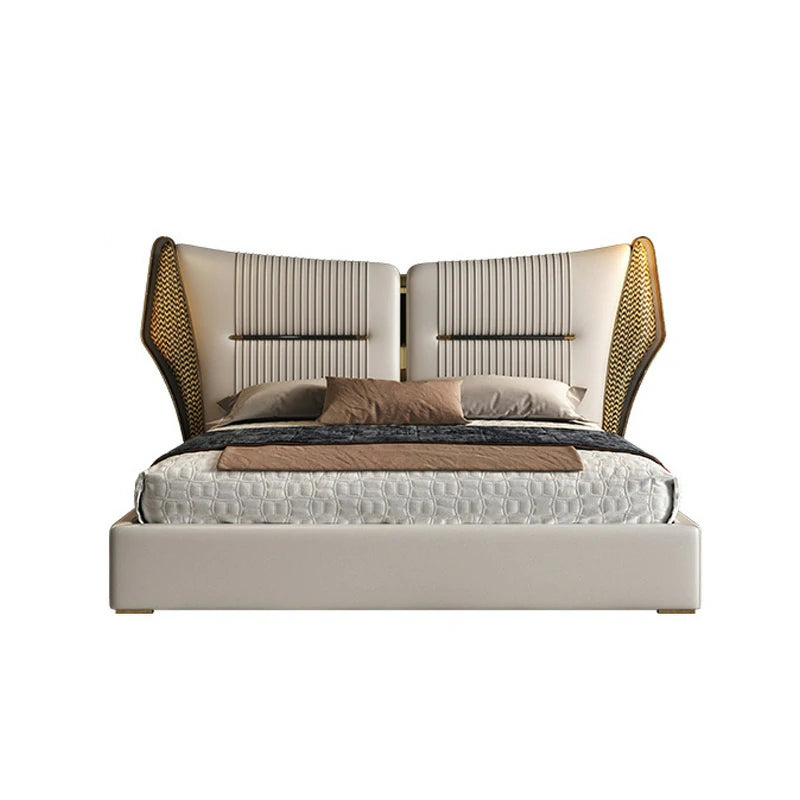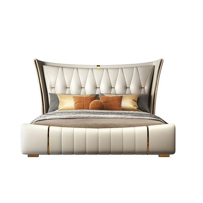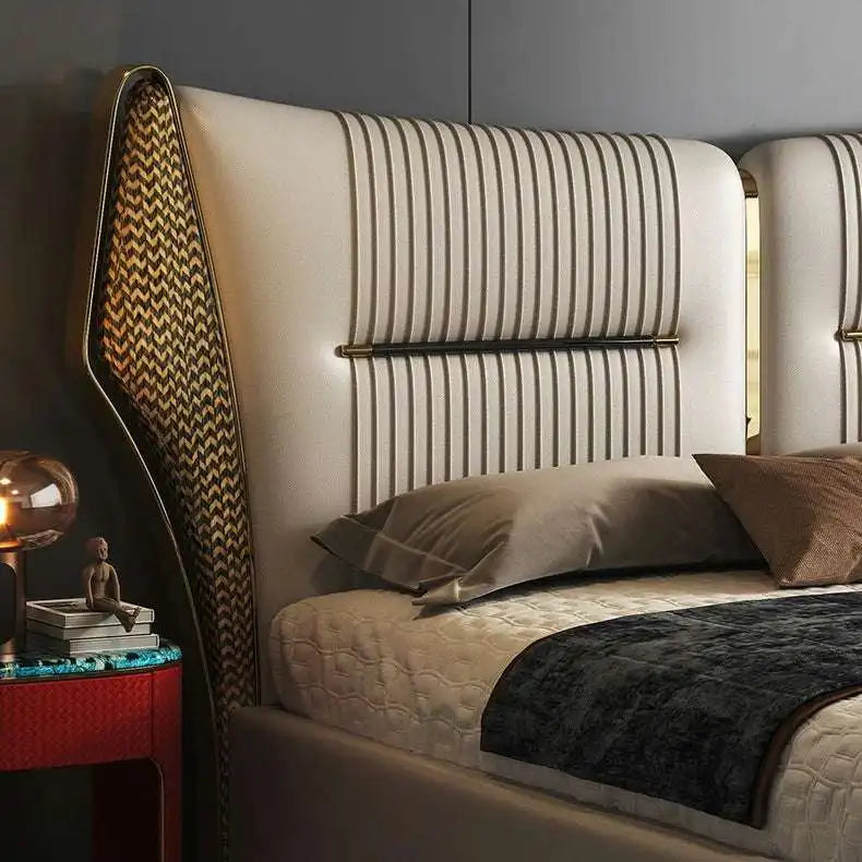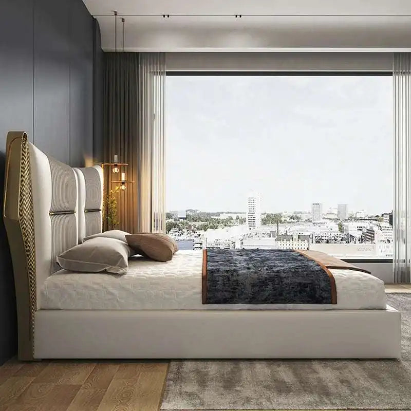 Cama con respaldo alto y detalles dorados - Estilo moderno y lujoso