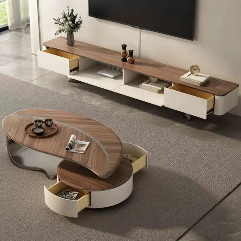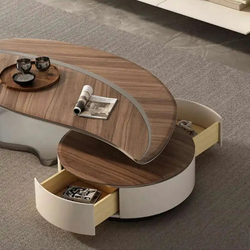 Mesas de centro con superficie de madera - Muebles decorativos de madera y acero inoxidable