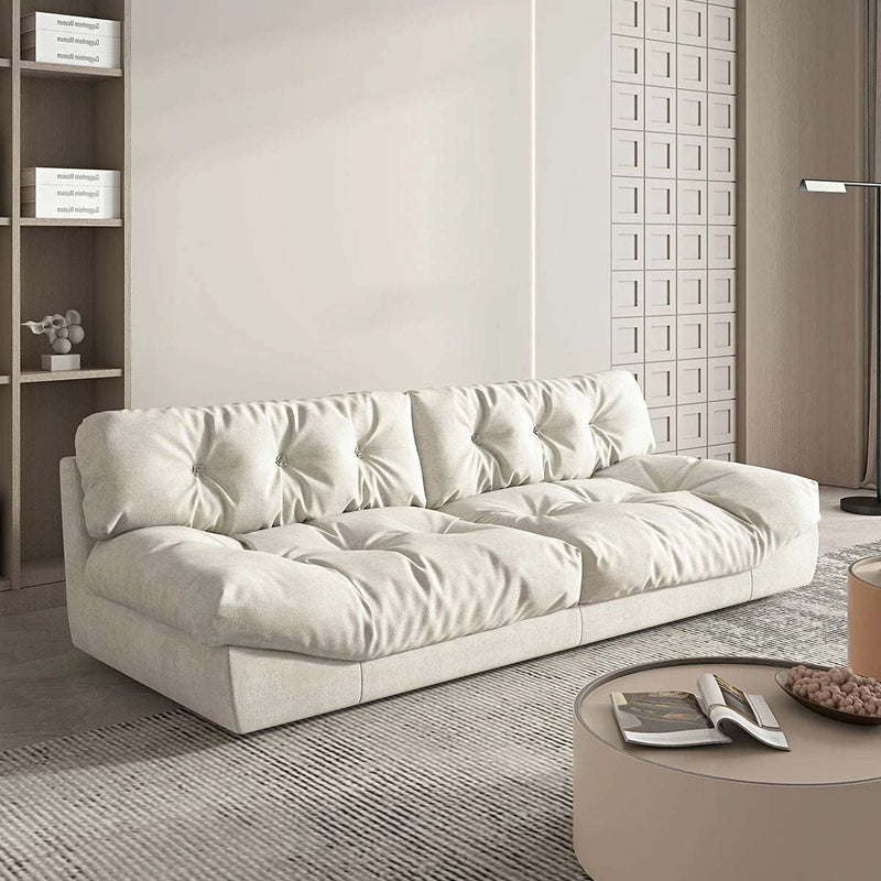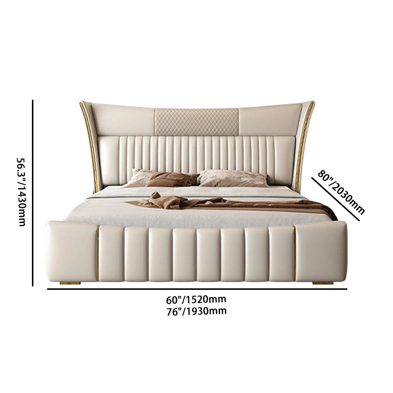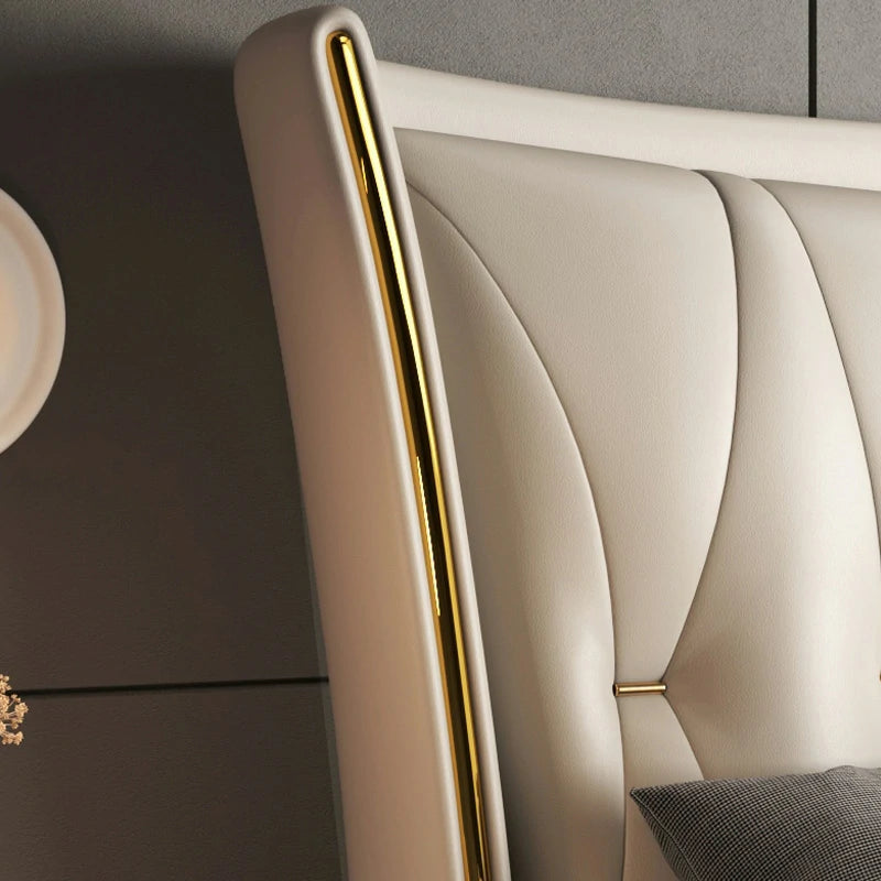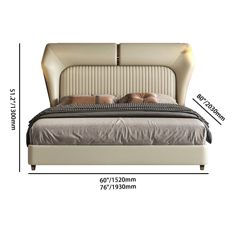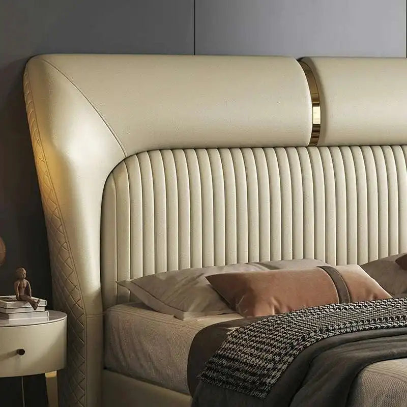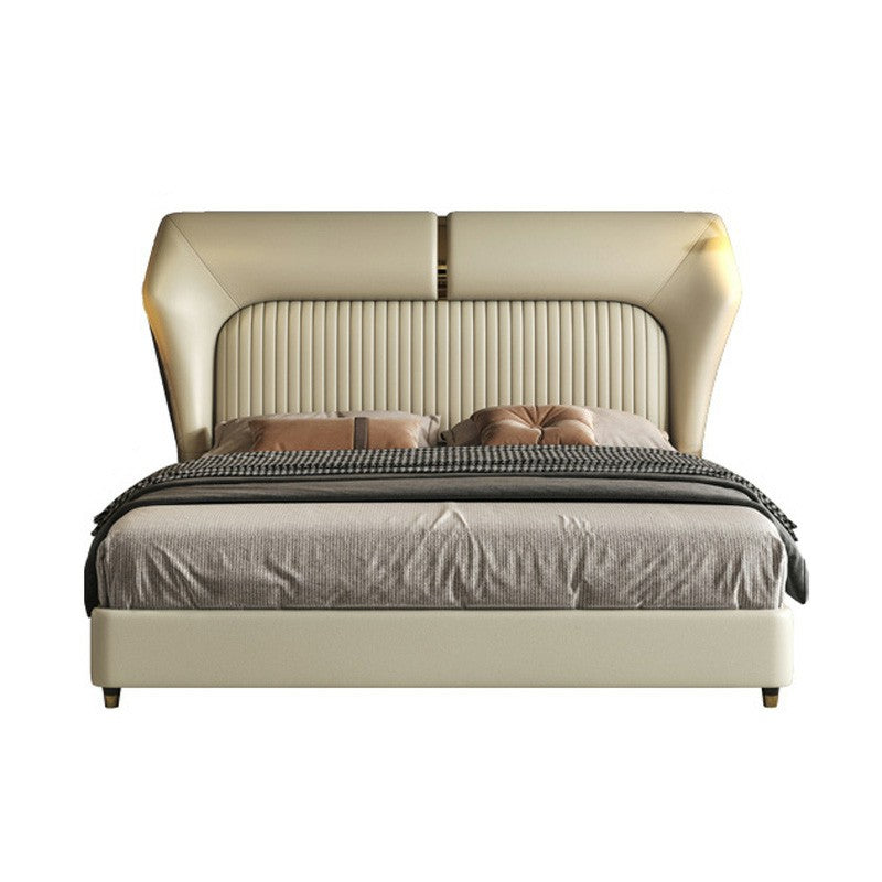 Estructura de cama con respaldo alto - Piel sintética color crema - Diseño moderno