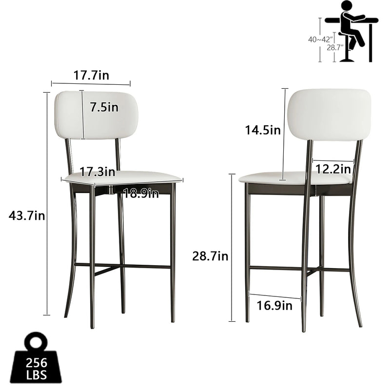 Taburete de bar blanco con asiento ancho - Capacidad de 136 kg | Cocina y bar